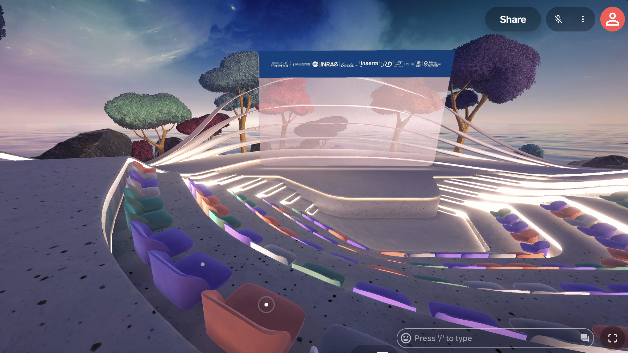 Un amphithéâtre virtuel utilisable pour les conférences ou autres réunions en visio-conférence